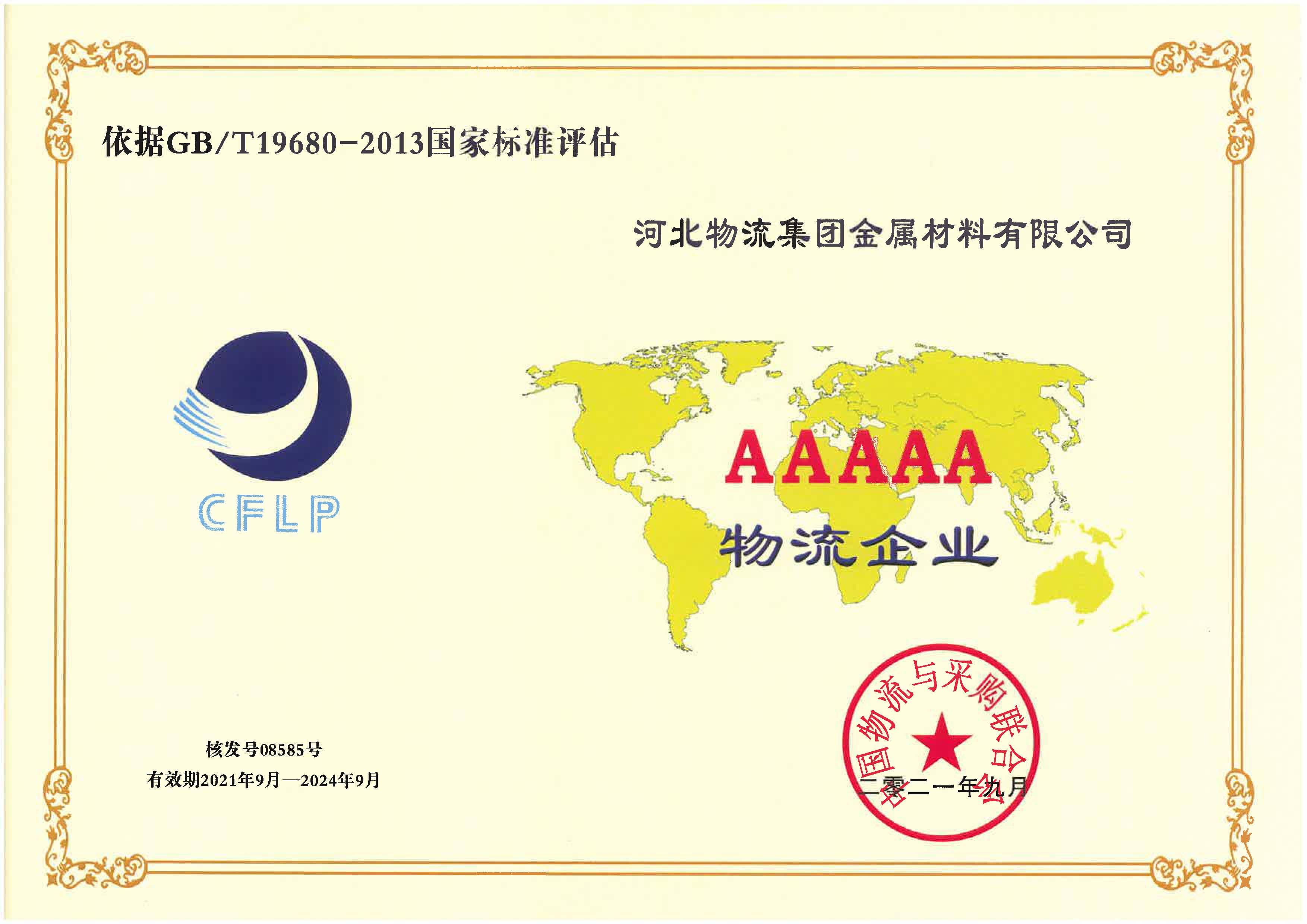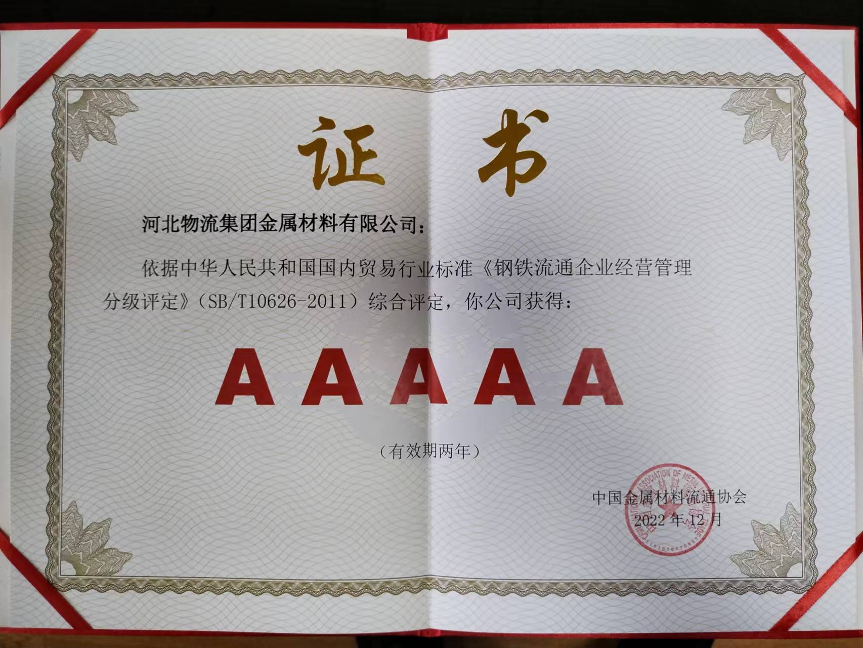 《鋼鐵流通企業經營管理分級評定》AAAAA級企業